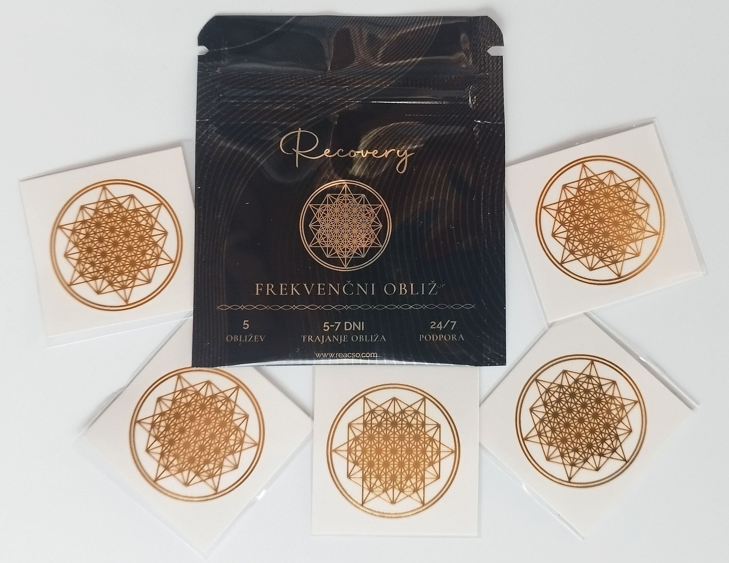Frekvenčni obliž Recovery je zasnovan kot podpora občutku ponovne uravnoteženosti po vsakodnevnih fizičnih obremenitvah. Vsebuje skrbno izbran spekter frekvenc, ki preko simpatetične resonance subtilno sodelujejo z energijskim poljem telesa ter ustvarjajo zaznavo lahkotnosti in pretočnosti. Primeren je za uporabo po telesni aktivnosti ali v obdobjih večje fizične obremenitve.